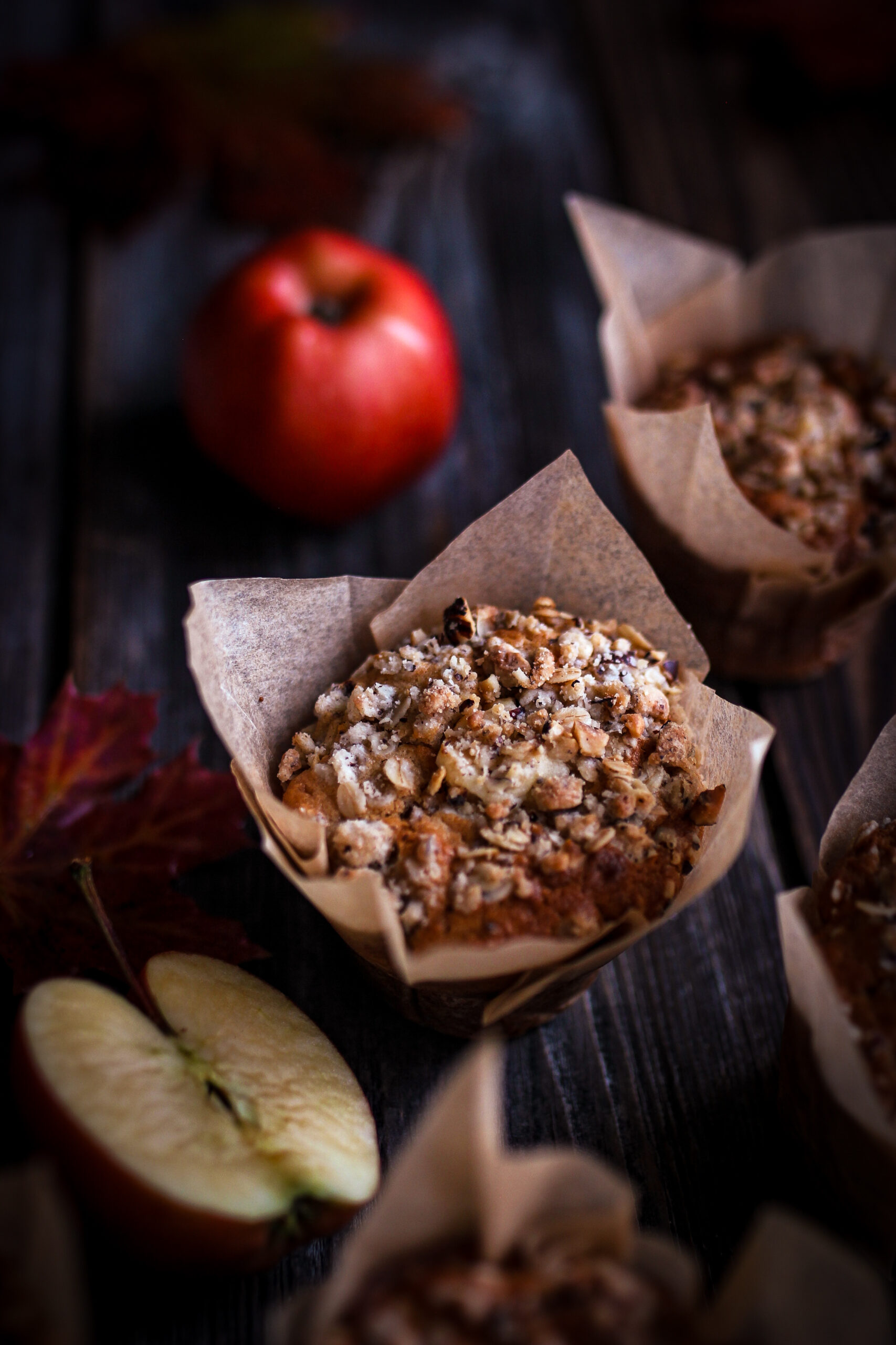 Muffiny plné jablek a skořice doplněné o tvarohový střed a posypané máslovou drobenkou s vlašskými ořechy. To je přesně to, na co jsem měla celý den chuť a při tomto sychravém počasí mi skvěle zvedlo náladu a nejen mě! Čerstvě upečené muffiny krásně provonily byt a klukům zvedly náladu, když přišly utahaní z kroužků. Během chvíle se po nich slehla zem a dětem se dělaly boule za ušima. Vyzkoušejte je. Věřím, že i vám vykouzlí úsměv na tváři.