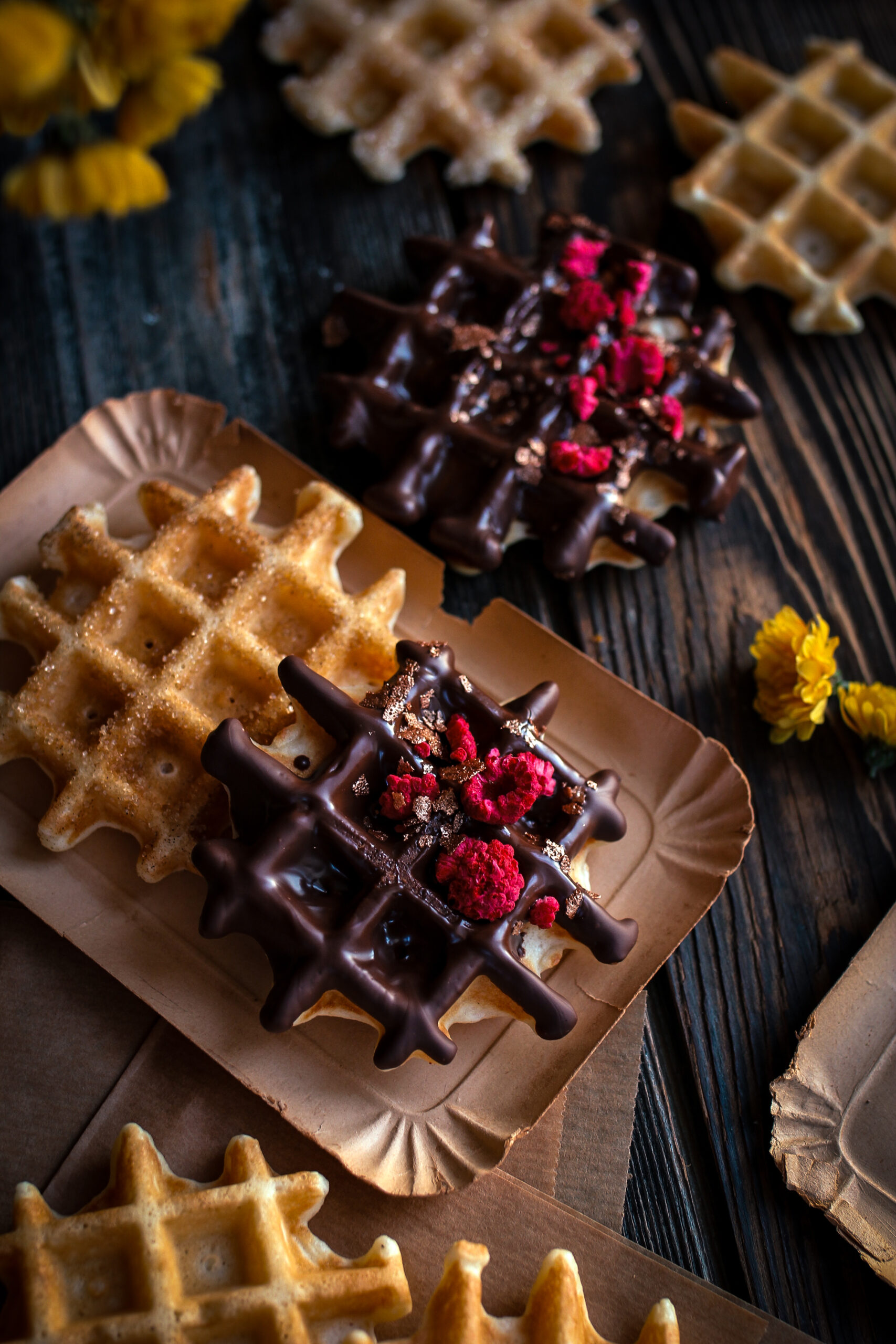 - Ještě teplé vafličky zdobíme dle chuti oblíbenými příchutěmi.