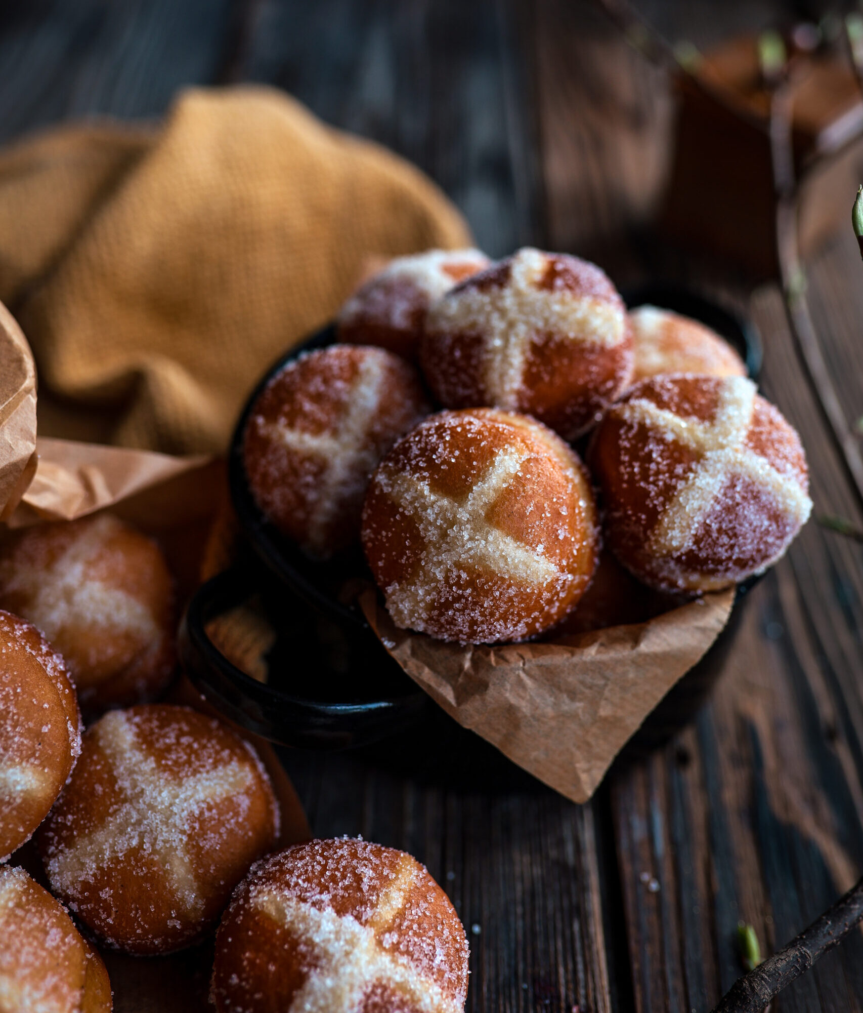 Nedám dopustit na naše české tradice, a tak u nás má své hlavní místo beránek a bochánek, ale vždy se tradiční tabuli snažím i něčím ozvláštnit, a tak když přijdou svátky jara, připravím i nějakou tu dobrotu s tématikou hot cross buns. Buď jsou to bochánky samotné, nebo jejich méně sladká varianta, aby se daly použít jako bulky například na burger a nebo jako dnes tyto kořeněné koblížky s britským křížkem. Vrhnete se na ně také?
