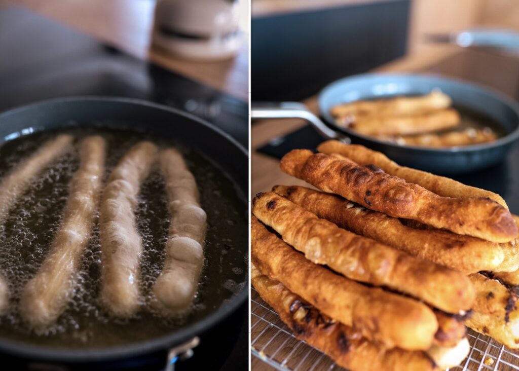 • V pánvi rozehřejeme olej a tyčky v něm smažíme 3 minuty z obou stran. Ještě horké podáváme.